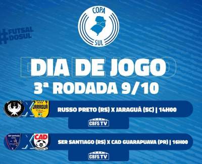 RUSSO PRETO E SER SANTIAGO COMEÇAM HOJE A DISPUTA DA COPA SUL, COMPETIÇÃO NACIONAL ORGANIZADA PELA CBFS. BOA SORTE AOS CLUBES GAÚCHOS!